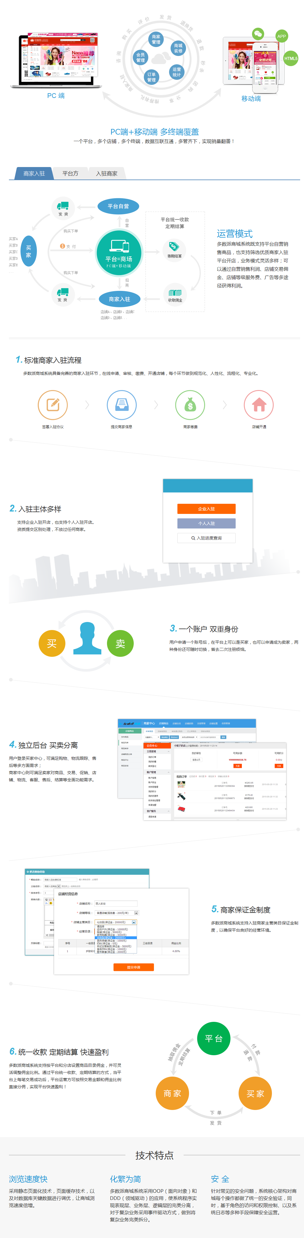 多数派思美电商为企业级客户研发的专业多商户、多终端覆盖商城系统,产品以商家入驻为核心,集B2C零售、B2B分销批发于一体,可同时实现平台自营和第三方销售两种经营模式,是一款为大中型企业解决有商家入驻开店需求的供应商+入驻型电商平台系统,是企业开展平台类型电商业务的最佳选择。